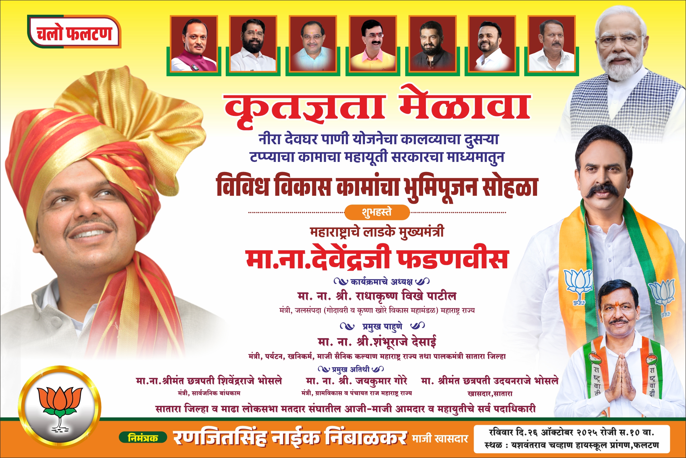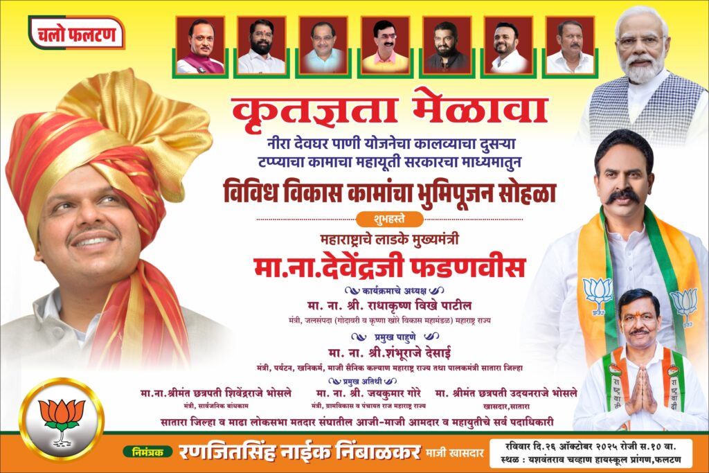 फलटण मध्ये रविवार दिनांक २६ रोजी मुख्यमंत्री देवेंद्रजी फडणवीस यांच्या हस्ते शेकडो कोटींच्या कामाचा शुभारंभ :