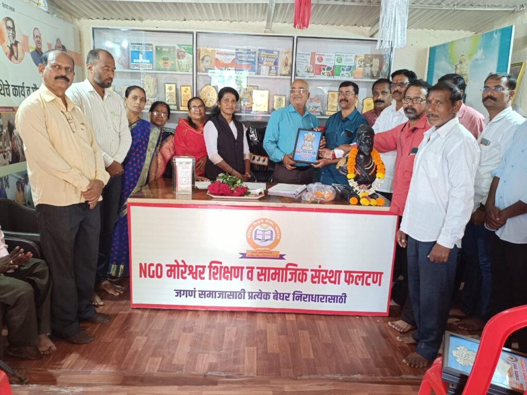 मोरेश्वर शिक्षण व सामाजिक संस्था,काळूबाईनगर,फलटण या संस्थेच्या पंधराव्या वर्धापनदिनानिमित्त लोकशाहीचा चौथा स्तंभ असलेल्या पत्रकारिता या क्षेत्रात काम कारणाऱ्या फलटण तालुक्यातील पत्रकार बांधवांचा सत्कार समारंभ संस्थेच्या वतीने आयोजित करण्यात आला होता. याप्रसंगी मोरेश्वर शिक्षण संस्थेचे संस्थापक,अध्यक्ष हनुमंत मोरे (मामा) यांनी आपले मनोगत व्यक्त केले. यावेळी बोलताना मोरे मामा यांनी सांगितले की ही संस्था गेली पंधरा वर्षे अविरतपणे बेघर, मानसिक संतुलन बिघडलेल्या लोकांसाठी सामाजिक कार्य करत आहे परंतु प्रशासनाच्या उदासीन धोरणामुळे फलटण तालुक्यामध्ये बेघरांसाठी निवारा उभा करण्यासाठी प्रशासनाच्या माध्यमातून जागा उपलब्ध करून दिली जात नाही, तसेच पत्रकार बांधवांच्या माध्यमातून वेळोवेळी मदत मिळाल्याबद्दल संस्थेच्या वतीने आभार ही मानले तसेच पुढील काळात फलटण तालुक्यातील पत्रकार बांधव संस्थेच्या पाठीशी समर्थपणे उभा राहतील अशी अशा व्यक्त केली यानंतर उपस्थित फलटण तालुक्यातील पत्रकारांच्या वतीने युवा जनमतचे पत्रकार युवराज पवार यांनी उपस्थितांना मार्गदर्शन मनोगत व्यक्त करताना पुढील काळात मोरेश्वर शिक्षण व सामाजिक संस्थेसाठी प्रशासनाकडून जागा मिळवून देण्यासाठी सर्व पत्रकार बांधव संस्थेसोबत प्रशासनाचा पाठपुरावा करतील अशी ग्वाही दिली.या कार्यक्रमास सामाजिक कार्यकर्ते बच्चुभाऊ मेहता,जेष्ठ पत्रकार पोपट मिंड, पत्रकार यशवंत खलाटे पाटील, योगेश गंगातीरे, प्रशांत रणवरे,अमोल पवार, आनंद पवार, प्रमोद सस्ते अशा सर्व उपस्थित मान्यवर व पत्रकारांचे सत्कार संस्थेच्या वतीने संस्थापक अध्यक्ष हनुमंत मोरे (मामा)सचिव सौ. निर्मला मोरे मॅडम,खजिनदार तथा सामाजिक कार्यकर्ते अक्षय तावरे, संस्थेच्या सल्लागार अँड.सौ.शारदा दिक्षित मॅडम,सदस्य अनिल कुंभार,सदस्य मोहन अलगुडे,सदस्य रवीद्र भिसे,सदस्या सौ.सुरेखा घाडगे, ज्येष्ठ मार्गदर्शक अरुण (बापू)गायकवाड़,अर्जुन राऊत, सौ.आलका कुंभार यांच्यावतीने ग्रामस्थ आणि सभासद यांच्या उपस्थितीमध्ये सर्वांचे स्वागत व आभार मनन्यात आले. फलटण – मोरेश्वर शिक्षण व सामाजिक संस्थेचा पंधराव्या वर्धापन दिनानिमित्त पत्रकार बंधुचा सत्कार करताना बच्चू शेठ मेहता यावेळी उपस्थित हनुमंत मोरे, अक्ष्य तावरे व इतर
