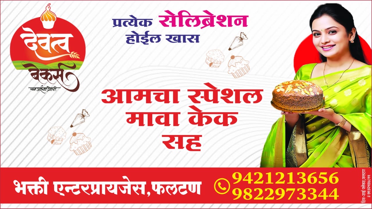 फलटण प्रतिनिधी – फलटण मध्ये मावा केकची धमाल, या दिवाळीच्या सणाला आईच्या प्रेमाची चव असलेल्या देवत्व बेकरीचा केक नक्कीच फराळाची चव वाढवेल तर आत्ताच आपल्या दिवाळीच्या फराळ बरोबर नक्कीच मावा केक तुमचा दिवाळीचा आनंद द्विगुणित करेल तर आजच भेट द्या भक्ती एन्टरप्रायजेस बुरुड गल्ली कसबा पेठ फलटण येथे संपर्क पत्रकार यशवंत खलाटे पाटील 9822973344/9421213656